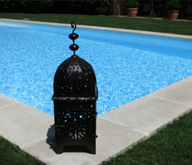 Dimensions 2.40 M X 6.50 M béton maconnerie. Pentes composées. Escalier banquette et escalier d’angle. Revêtement PVC Armé Alkorplan Xtreme Volcano. Nage à contre courant Badujet Primavera. 1 projecteur à led. Margelles en pierre naturelle de Massangis épaisseur 7 cm. Electrolyseur DAVEY Promatic Life Guard. Robot électrique Maytronics Zénit 1B, Pompe à chaleur Aqualux Vesuvio Inverter. Volet hors sol APF Pool Classic lames grises.
